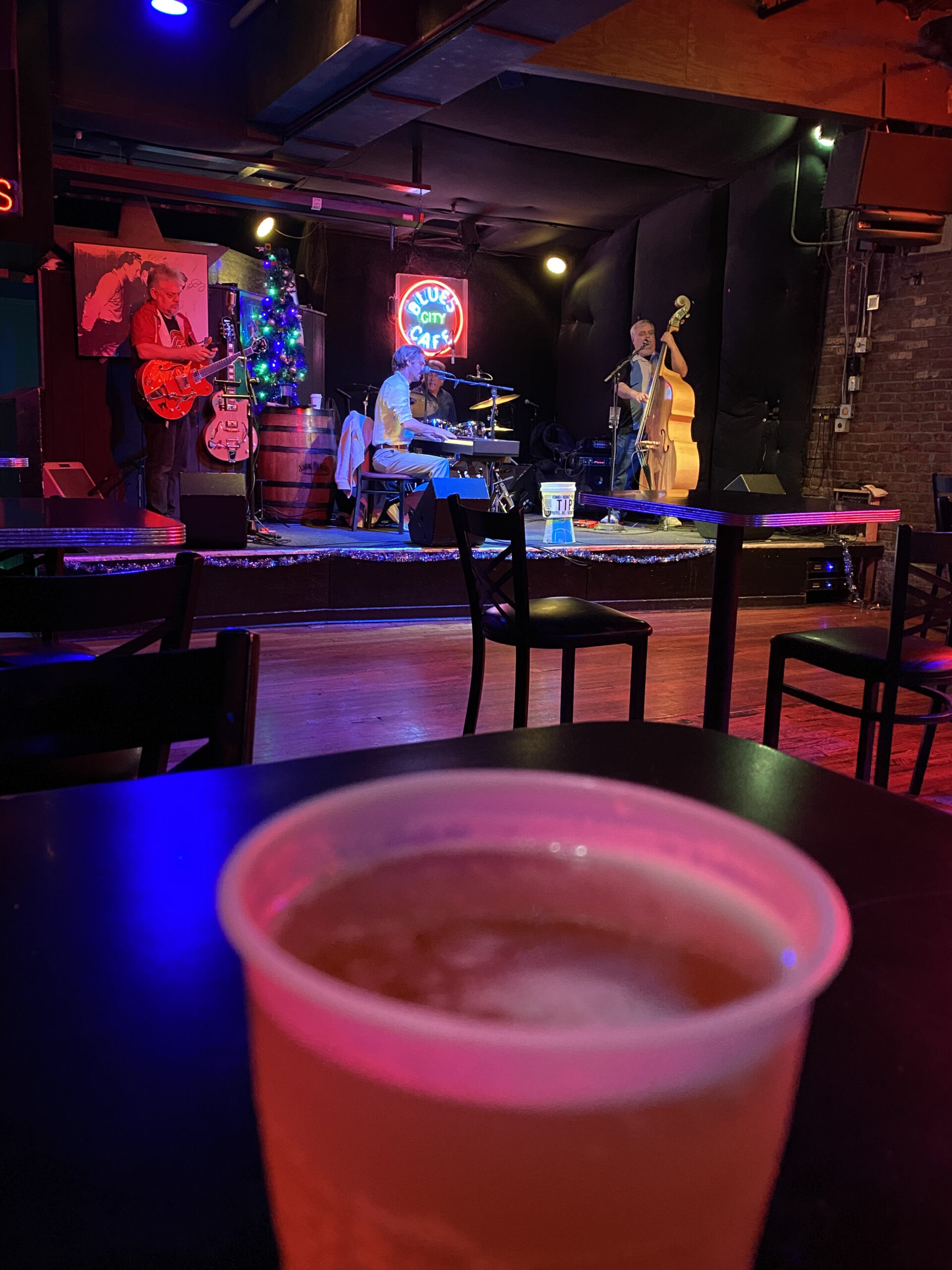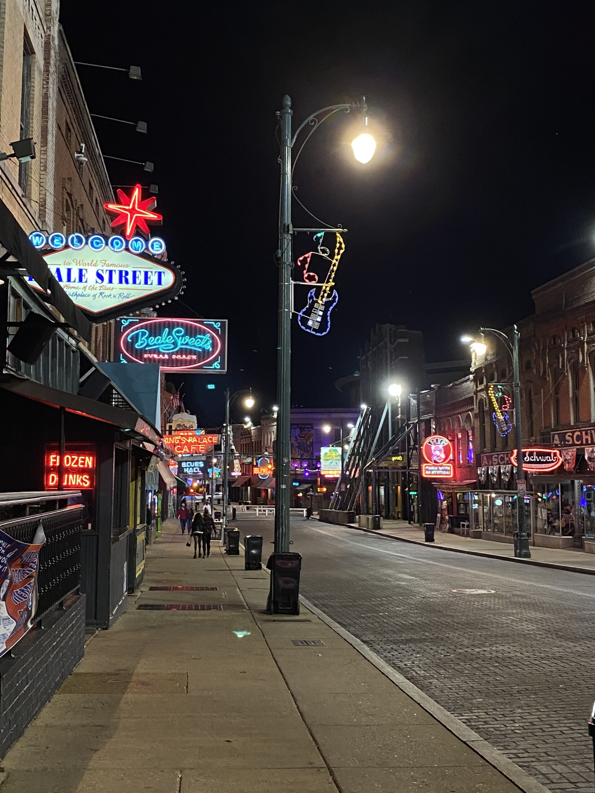 Rytm dnia już jest wyuczony. Krótki, popołudniowy odpoczynek i wieczorny wypad na koncerty. Tym razem na legendarną Beale Street w Memphis. Neonoza w najlepszym tego słowa znaczeniu – ulica stosunkowo niedługa, pełna kolorowych, mrugających neonów, zachęca do wejścia na koncert, a wszędzie inna muzyka. Memphis to miasto ścierania się muzyki białych i czarnych amerykanów a więc gdzieniegdzie klimaty zbliżone do delty, gdzieindziej króluje rock and roll. My wylądowaliśmy najpierw w klubie gdzie pianista do bólu przypominał scenicznym image Jerry Lee Lewisa i posłuchaliśmy trochę rockabilly w najlepszym wydaniu. Potem znaleźliśmy się w klubie, w którym wystrój stanowiły podwieszone na suficie gitary z