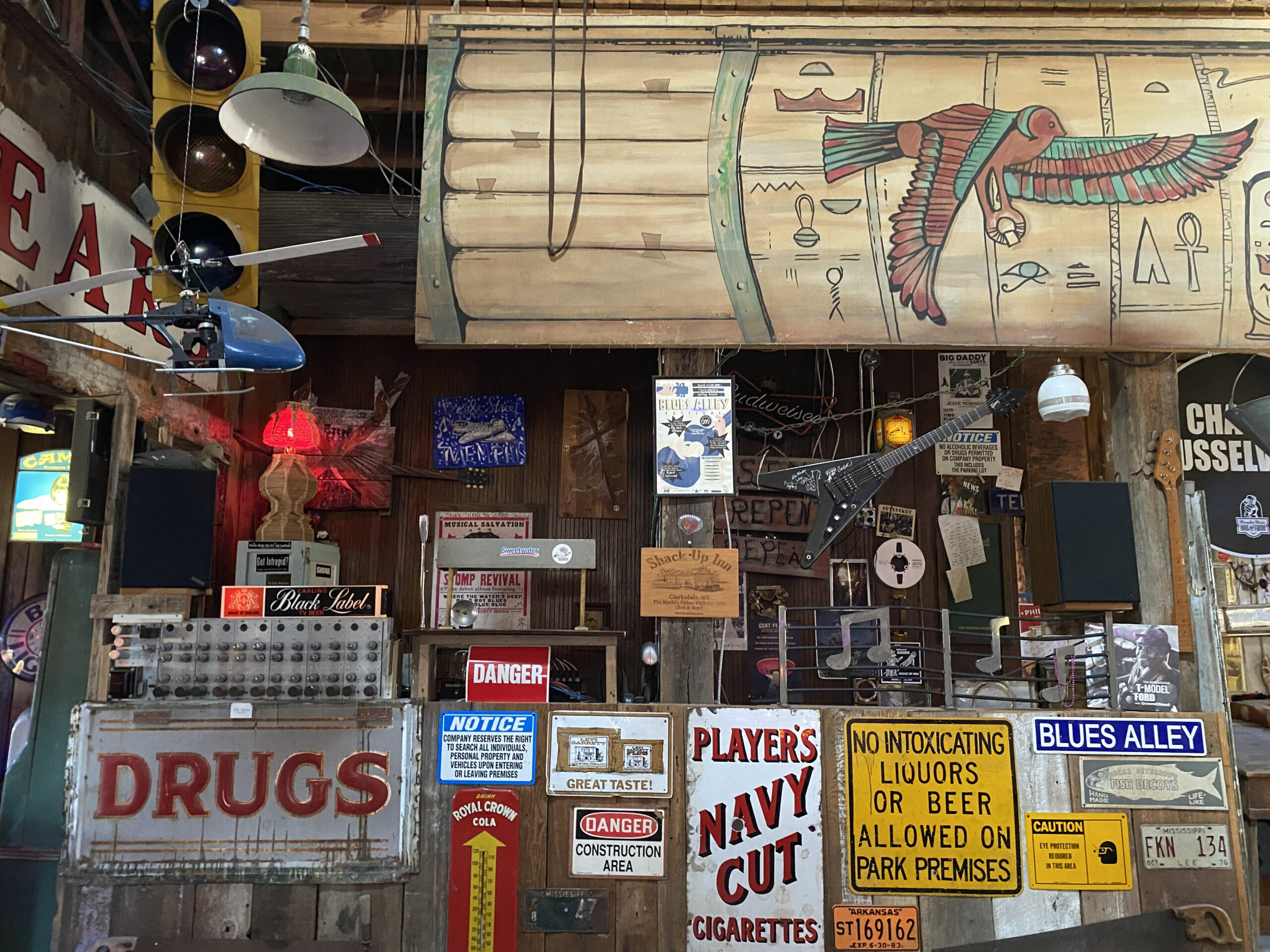 Klub, którego właścicielem jest Morgan Freeman, i którego celem jest podtrzymywanie kultury bluesa w dzisiejszym Missisipi. Proszę się nie martwić Panie Morgan, blues obecny jest wciąż i wszędzie 😊. Miejsce dość rozsławione, często gości tuzy bluesa. Drugim przystankiem był klasyczny Juke Joint – klub zachowany bardzo niedbale, klasyczna rudera, która broni się klimatem. To było przeżycie mistyczne. Redd’s Juke Joint to klub, w którym czas zatrzymał się wiele lat temu. W środku Afroamerykanie i – od tego momentu – dwójka turystów z polski. „Big A”, lokalna gwiazda, lekko podchmielony opowiada swoją historię z bluesem. Pełen pasji i zaangażowania. Wystrój lokalu – mimo, że znajdujemy się w USA – przypomina do złudzenia lokalną knajpkę w sercu Afryki. Budynek ledwo stoi, w środku sporo śmieci, nigdy nie sprzątane, sufit lekko oberwany, podtrzymany folią budowlaną… To wszystko jednak tworzy obraz jak z filmu, jak z tekstów tych wszystkich bluesowych utworów. Nigdy nie przeżyłem czegoś podobnie autentycznego.