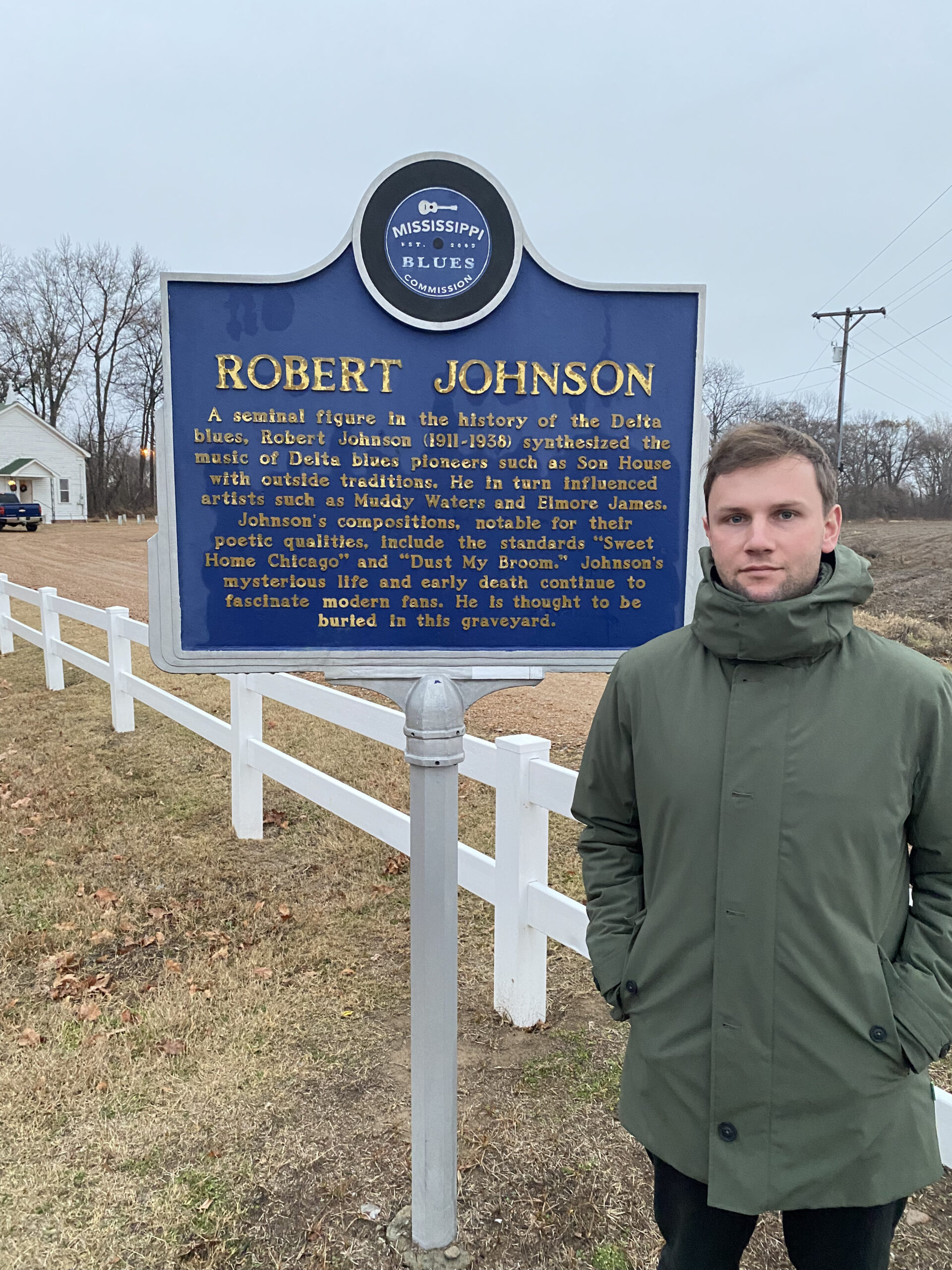 ci jednak są to tablice upamiętniające, umieszczone gdzieś w szczerym polu albo pośrodku jakiejś miejscowości. Warto zatem przejrzeć sobie tę aplikacje na etapie planowania podróży i świadomie wybrać kilka z tych punktów. My zdecydowaliśmy się odwiedzić tego dnia m.in. symboliczny grób Roberta Johnsona uważanego za ojca muzyki bluesowej, pierwszego z niesławnego klubu 27, postać tragiczną, mistyczną i legendarną już nie tylko dla fanów muzyki ale w popkulturze amerykańskiej. Legenda głosi, że pewnego dnia zawarł pakt z diabłem na rozstaju dróg. To zaprowadziło go do zguby i wczesnej śmierci. Stąd w kanonie bluesa tak wiele utworów nawiązujących do sławnego „Crossroads Blues”.