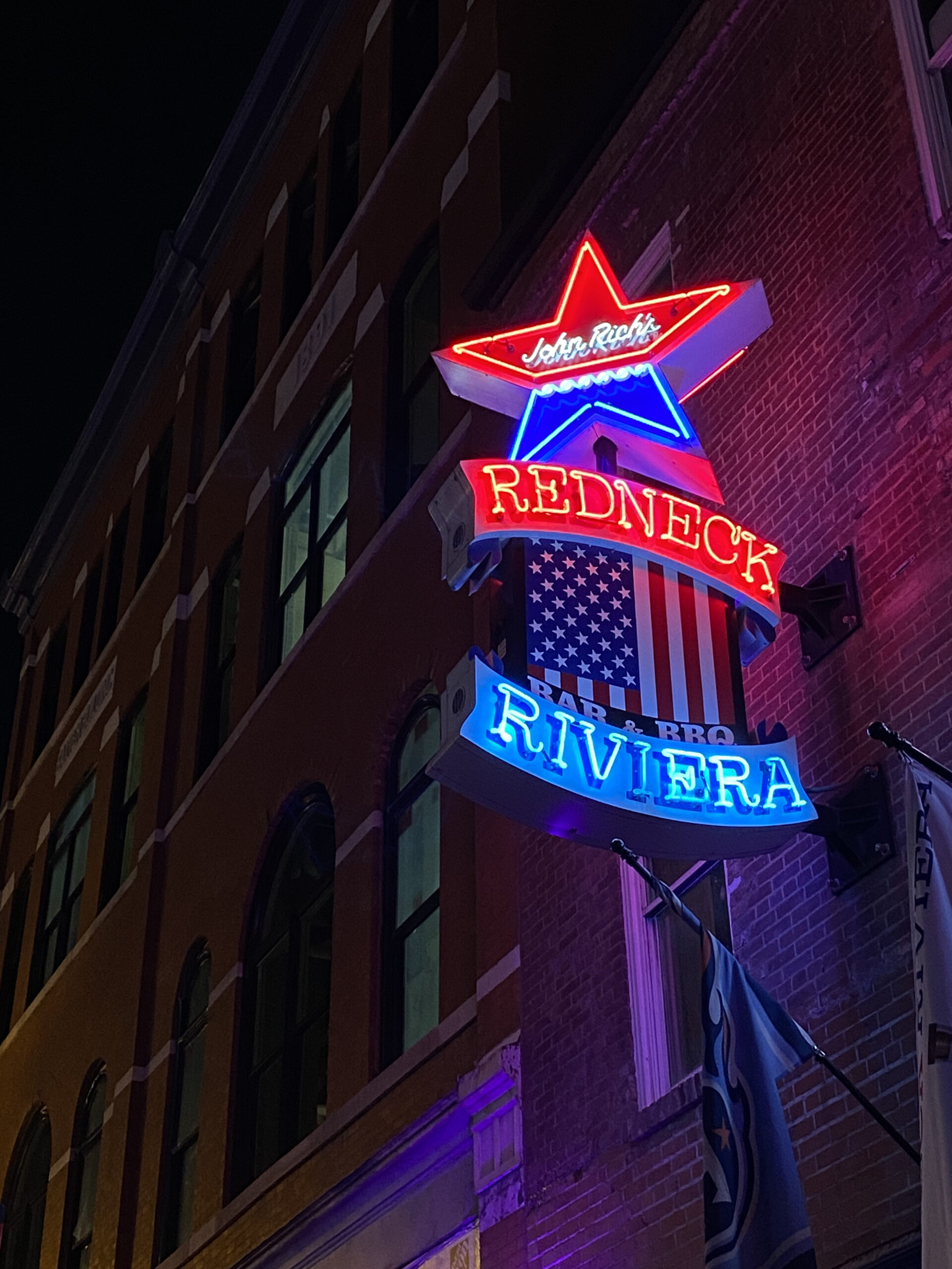 Na przedmieściach witają nas pokaźne wille a „downtown” znacznie pokaźniejsze w kontekście nowoczesnych wieżowców niż Memphis czy Nowy Orlean. Jesteśmy już nauczeni schematu. Interesuje nas muzyka! Szukamy głównej ulicy pełnej neonów 😊. W przypadku Nashville była to Broadway. Pojedliśmy pysznego kurczaka, z którego Nashville słynie i ruszyliśmy w miasto! Zupełnie inny klimat! To chyba właśnie tak wyglądają amerykańskie tradycyjne dyskoteki? Jak dla mnie bomba! Muzyka country na żywo, sporo alkoholu, nieoficjalnie obowiązuje dresscode w każdym jednym klubie – kowbojki, kapelusz i wszechobecny jeans obowiązkowy! Muzyka na Broadway w Nashville gra bez przerwy, od 10:00 do białego rana. Atmosfera już mniej koncertowa, mniej głęboka w przekazie, zdecydowanie bardziej zabawowa. Idealnie żeby skończyć tę przygodę!